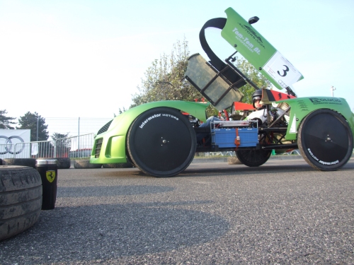 Befejeződött a Szériaautók futama. Debreceni Dániel és a süvegszerű REVAi győzelme egy pillanatig sem volt kétséges a látottak alapján. A második Elektro GO-KART futam, amely egyben a nap utolsó és igen látványos versenyprogramja, időközben megkezdődött.