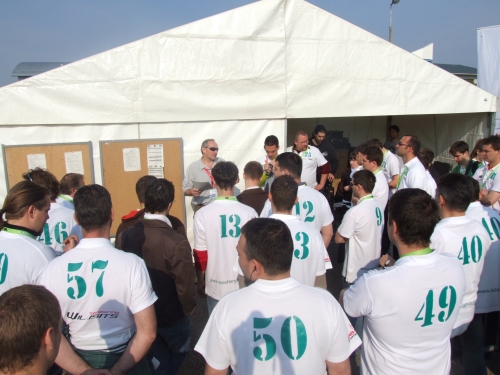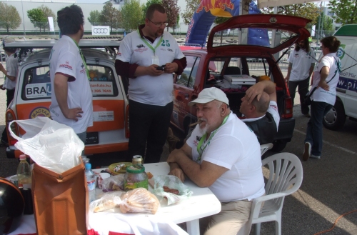 Bő tíz perc van még hátra a tanulmányautók és napelemesek hosszú távú futamából. Időközben megtudtuk, az "air" kifejezés együtt jár egy sajátos "kerékcserével", ami itt a légtartályok cseréjét jelenti. Meg is örökítettük, amint két pneumatikus járgány igyekszik hamarabb abszolválni a pit-stop tartózkodást a másiknál.
