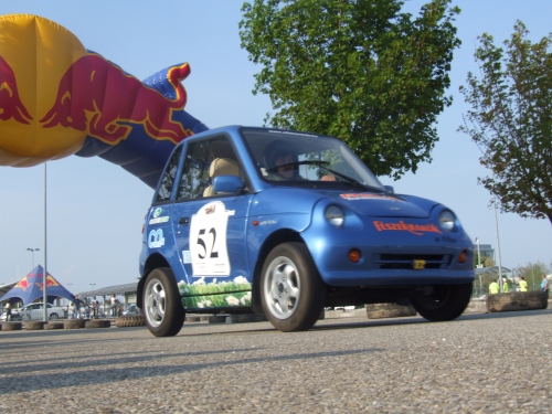 Amint azt sejtettük, rendkívül izgalmas befutóval ért véget az Átalakított szériaautók futama, ahol még az utolsó körben is változott a helyzet az élen. Az csak egy dolog, hogy pár méter választotta el az első két helyezettet a leintéskor, az viszont igazi kuriózum, hogy az nyert, aki másodiknak ért célba. Éspedig azért, mert rajtkor hátrébb indult, s a rajt és cél között megtett idő a mérvadó. Tehát, bármilyen fura is, a videón látható Elektro Tipo lett a második, a kis kék csoda (Blue Energy) pedig az első. Persze mindkét autó egy csapathoz tartozik, így senkinek nem görbülhet a szája, mi pedig igazán élvezetes véghajrát láthattunk.